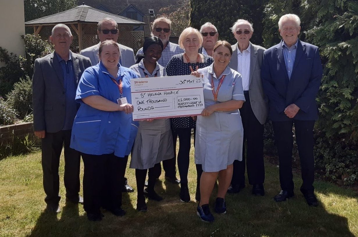 Charitable giving is a very key part of Freemasonry for many members. Therefore, we were extremely pleased to be able to present a cheque for £1,000 in May 2025 to St Helena Hospice. They do some truly great work to help people in north east Essex face incurable illness and bereavement, supporting them, their families, friends and carers. You can see more about what they do here https://sthelena.org.uk/what-we-offer